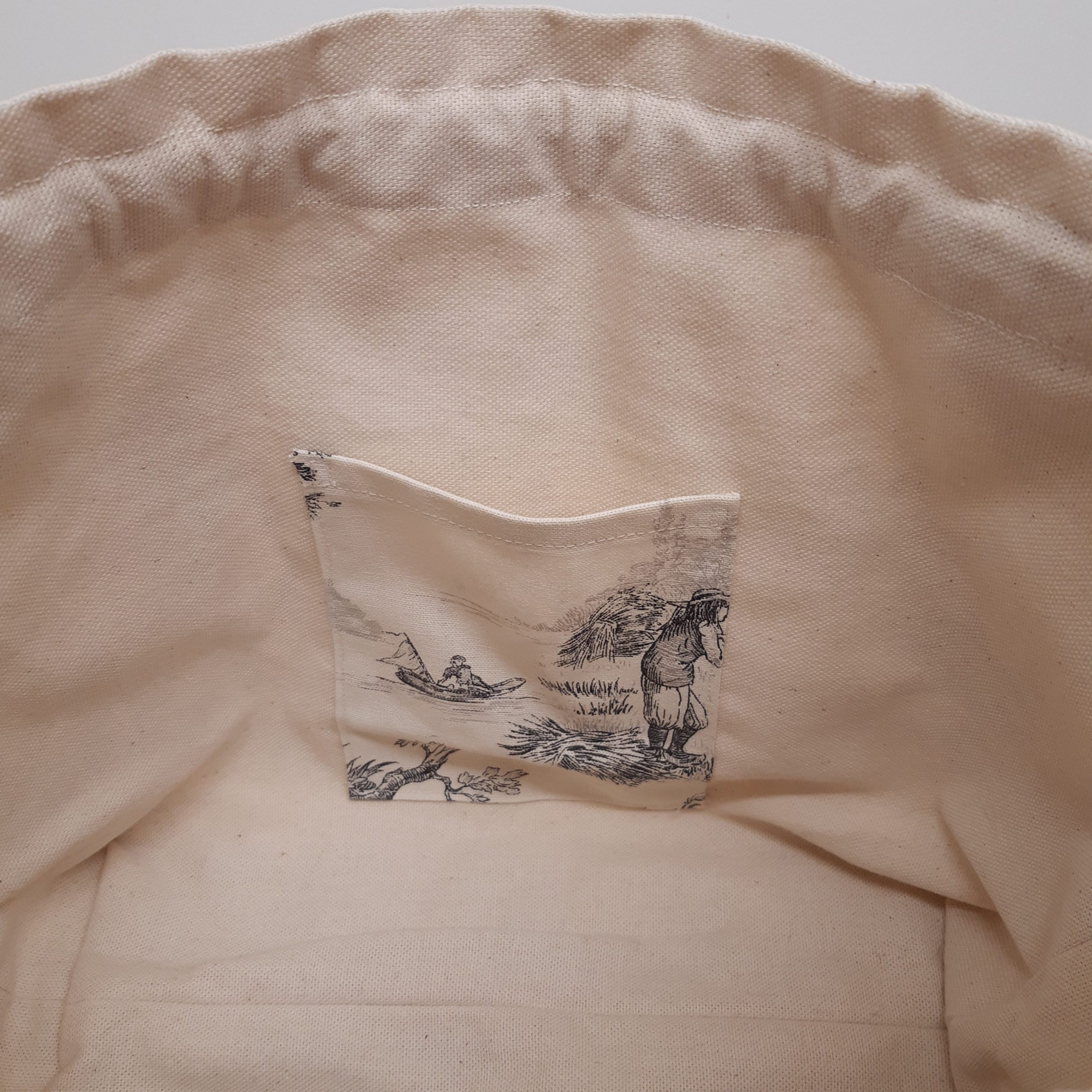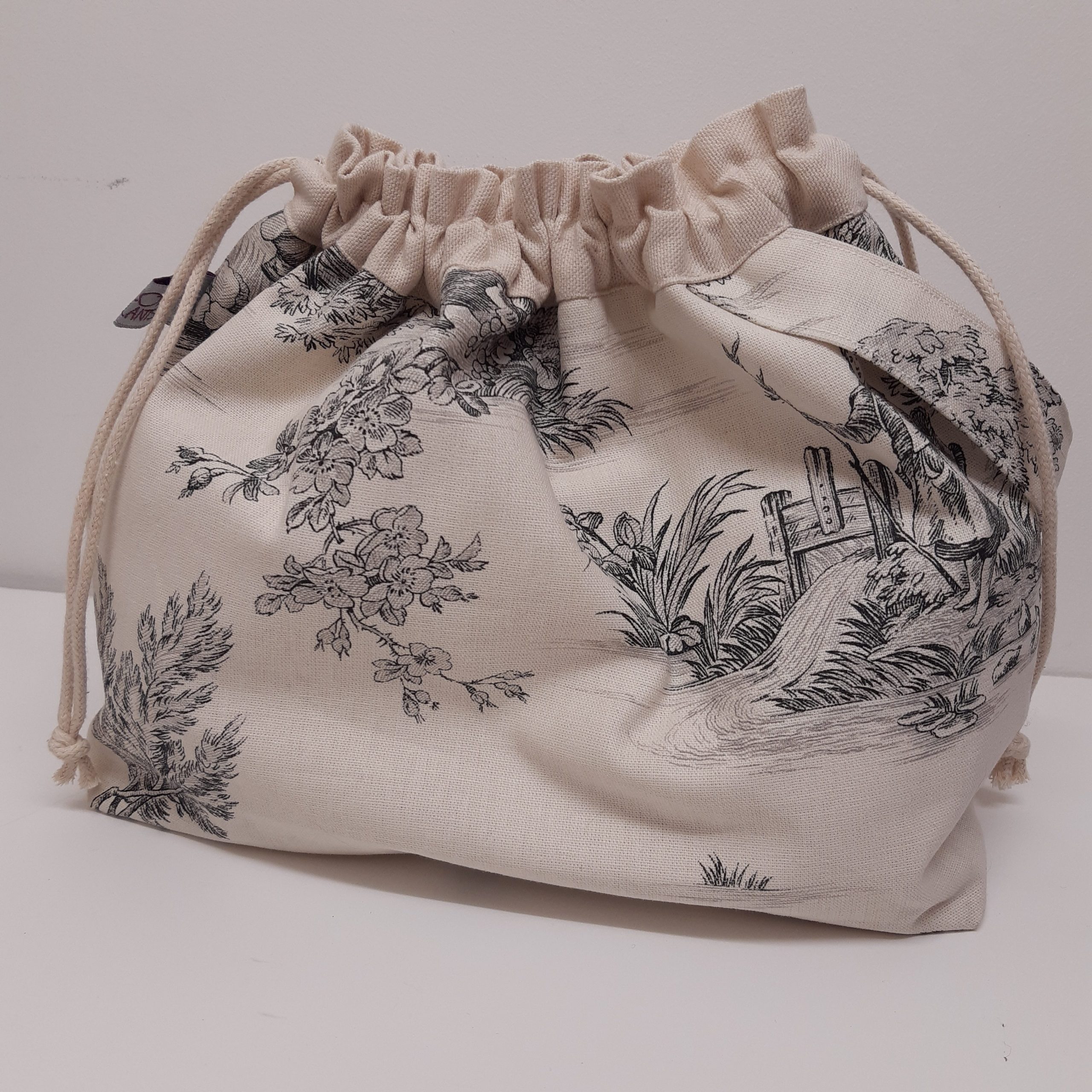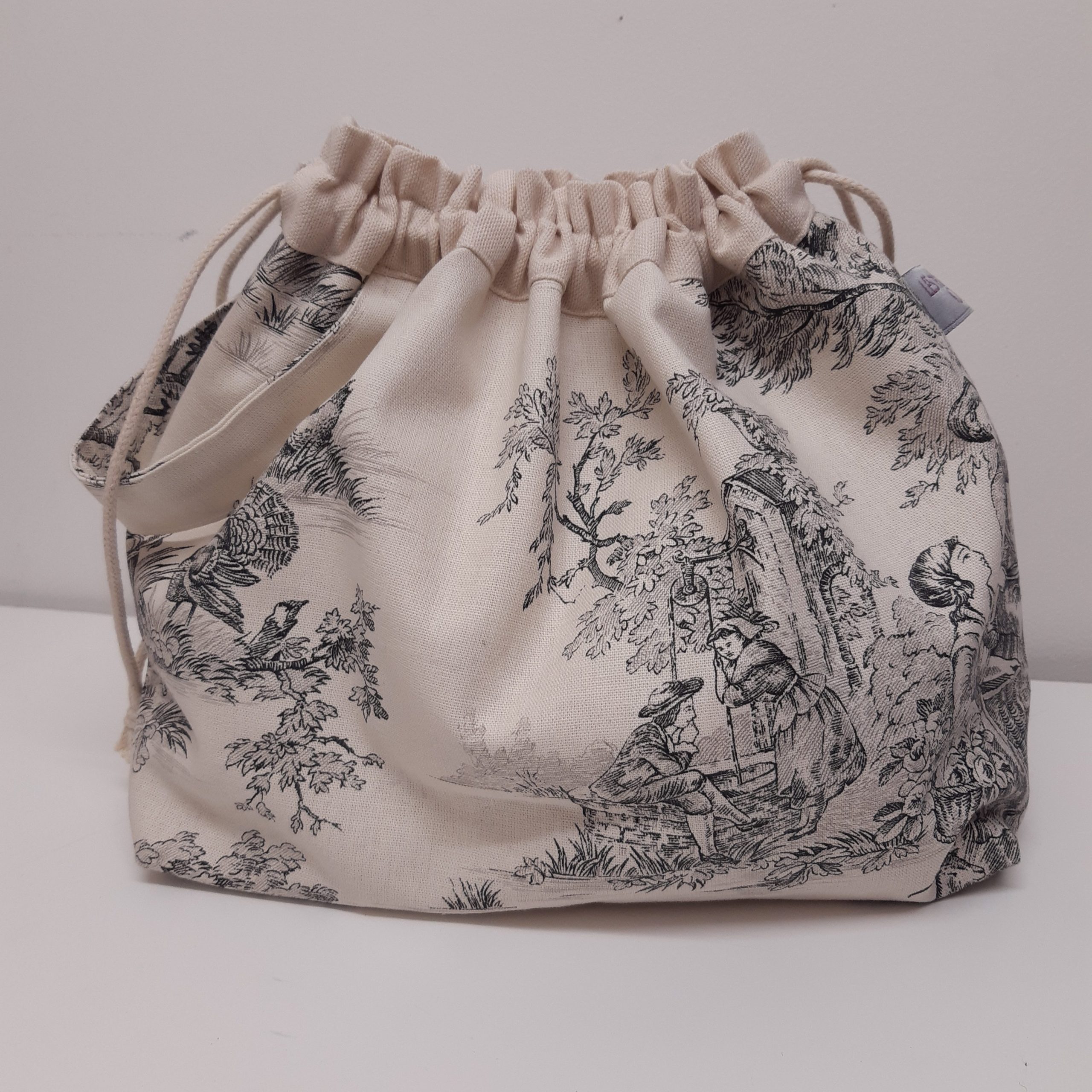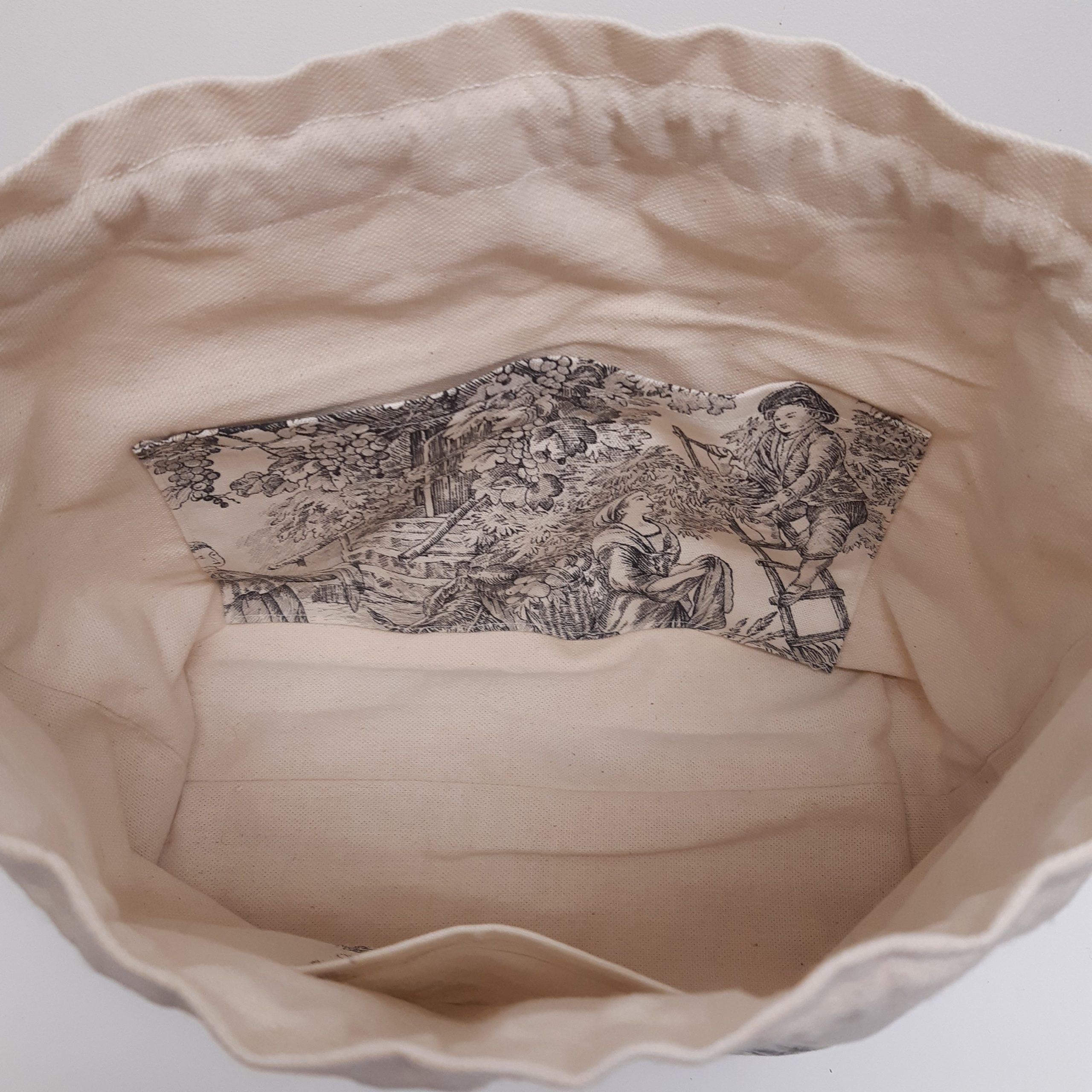 En toile de coton, avec une poignée et deux poches intérieures, ce sac est très pratique pour ranger et transporter vos en-cours partout. Fabriqué à Paris dans mon appartement par moi-même.